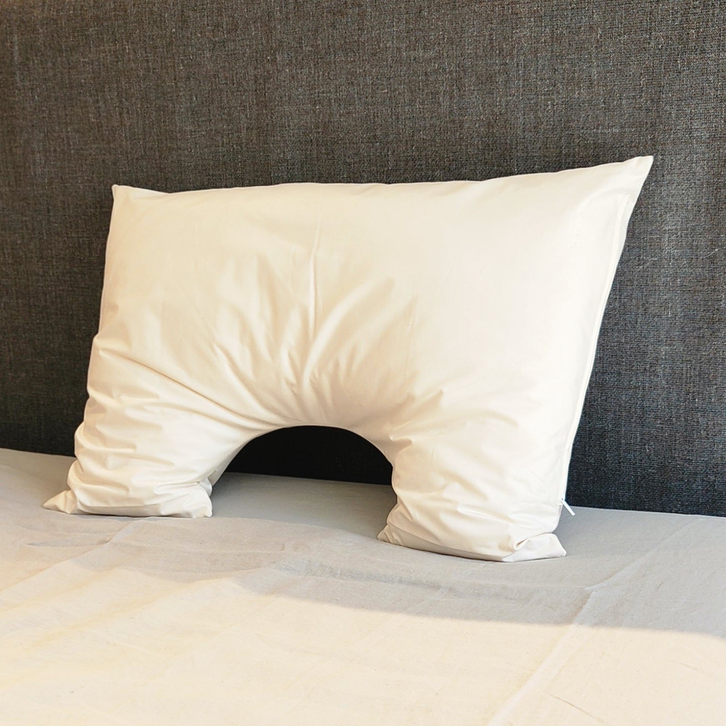 エルゴ枕より小ぶりな分、しっかりつまった羊毛から弾力性が感じられ、高さも出しやすいエルゴ枕クライン。横向き寝の方に特に好評ですが、首元のカーブを頸椎にぐっと沿わせての仰向けも支えが気持ち良いと人気です。
