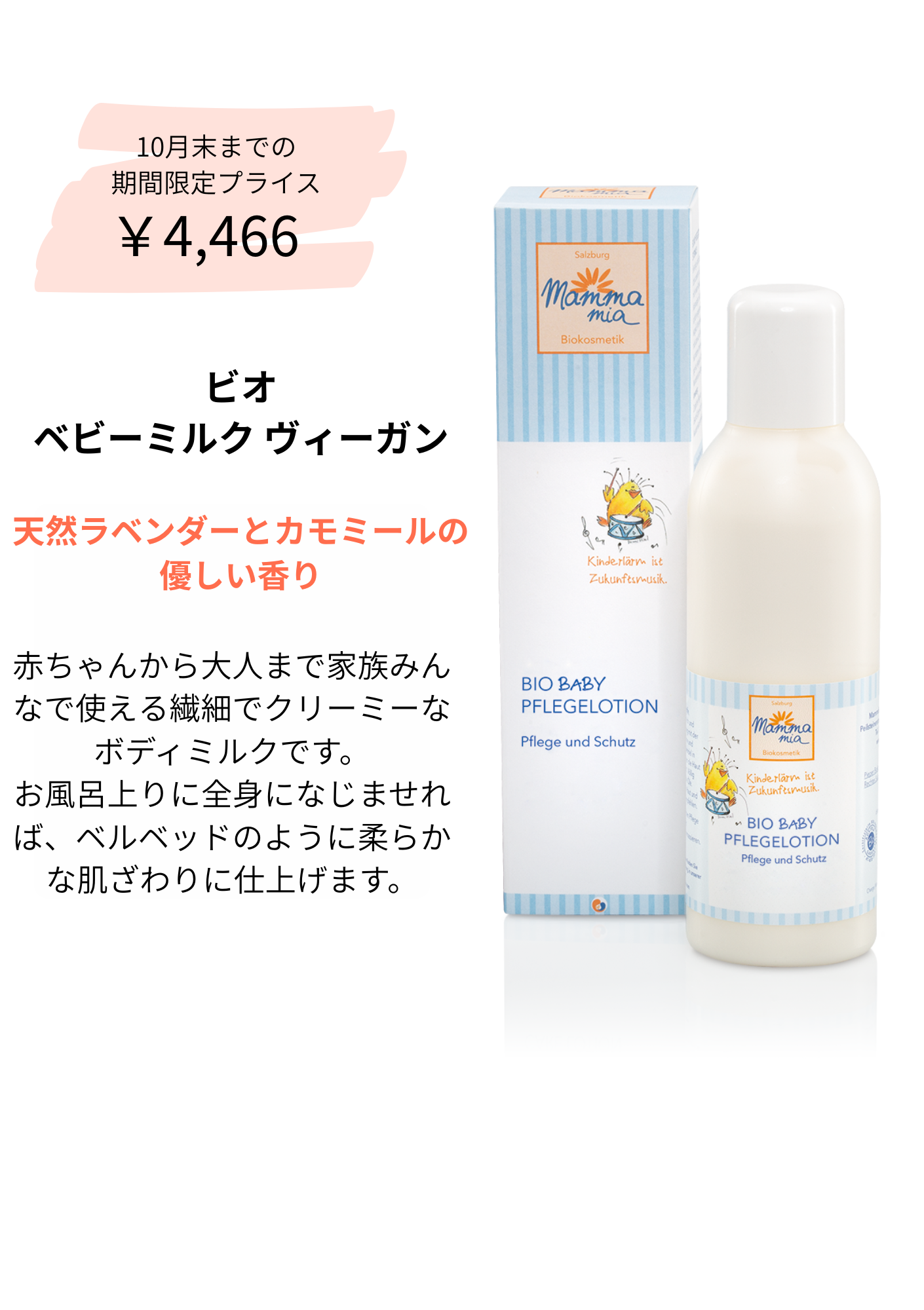 植物由来のやさしさをそのままに。ラベンダーとカモミールの自然な香りが、肌と心に穏やかな時間をもたらします。赤ちゃんから大人まで、家族みんなで使えるなめらかでクリーミーなベビークリーム。肌に触れるたび、ベルベッドのような滑らかなやわらかさが広がります。