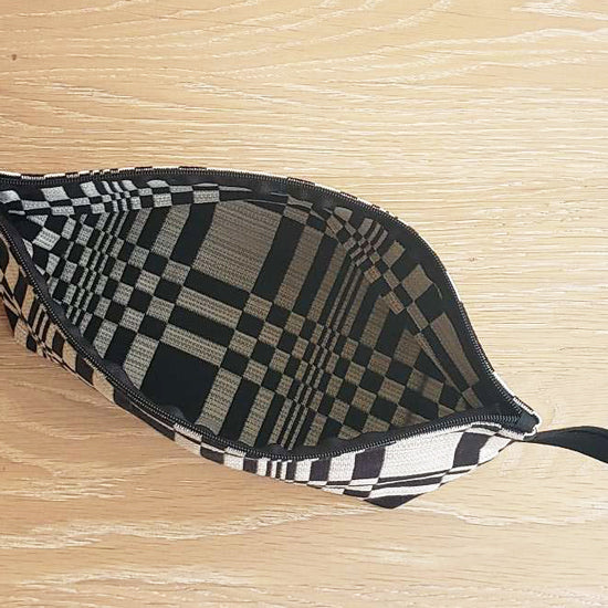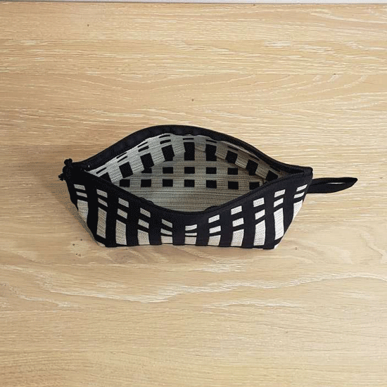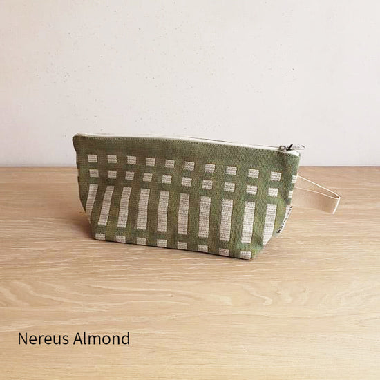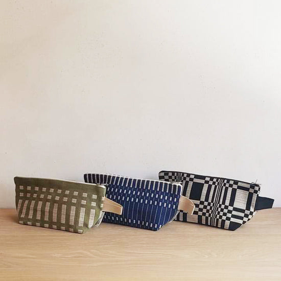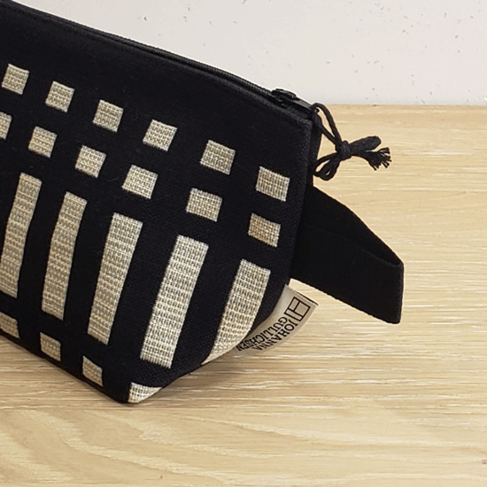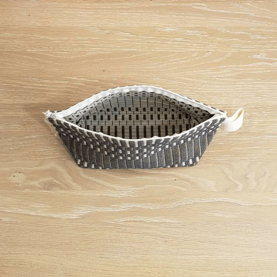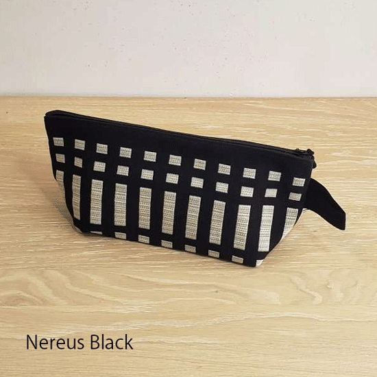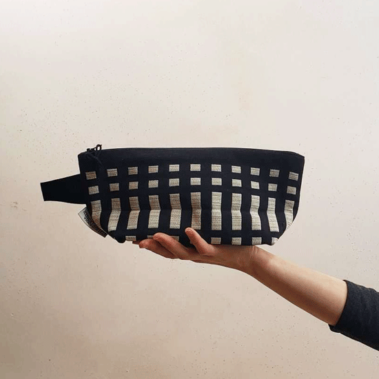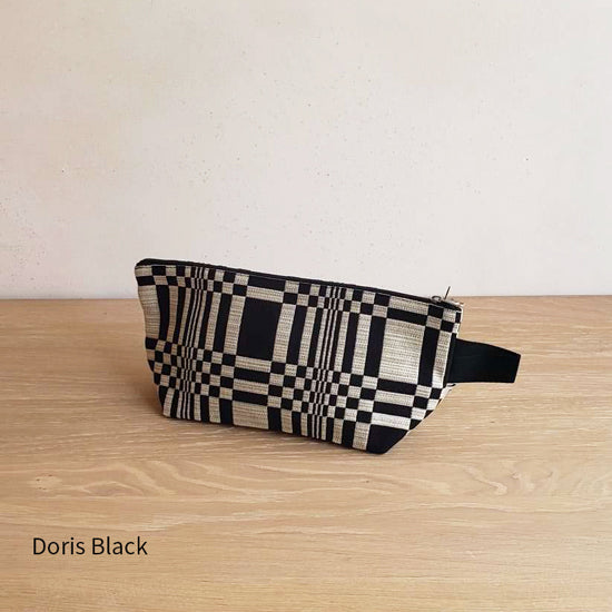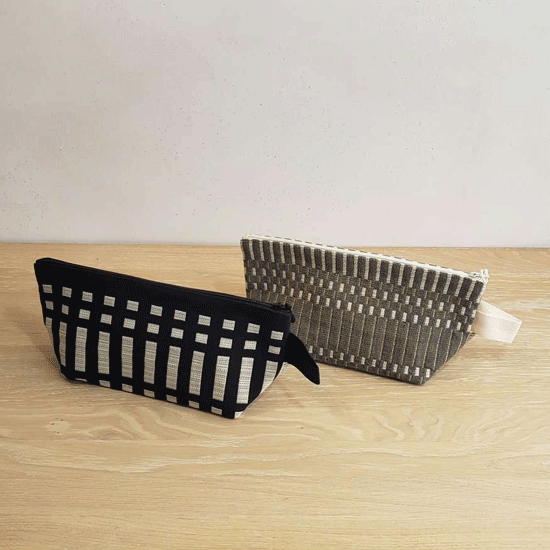Johanna Gullichsen(ヨハンナグリクセン)の洗練されたカラーと独特の幾何学模様が印象的なノルマンディ・コレクションを使用した舟型のポーチ。マチがあり自立するので旅先のコスメポーチにぴったりのアイテムです。